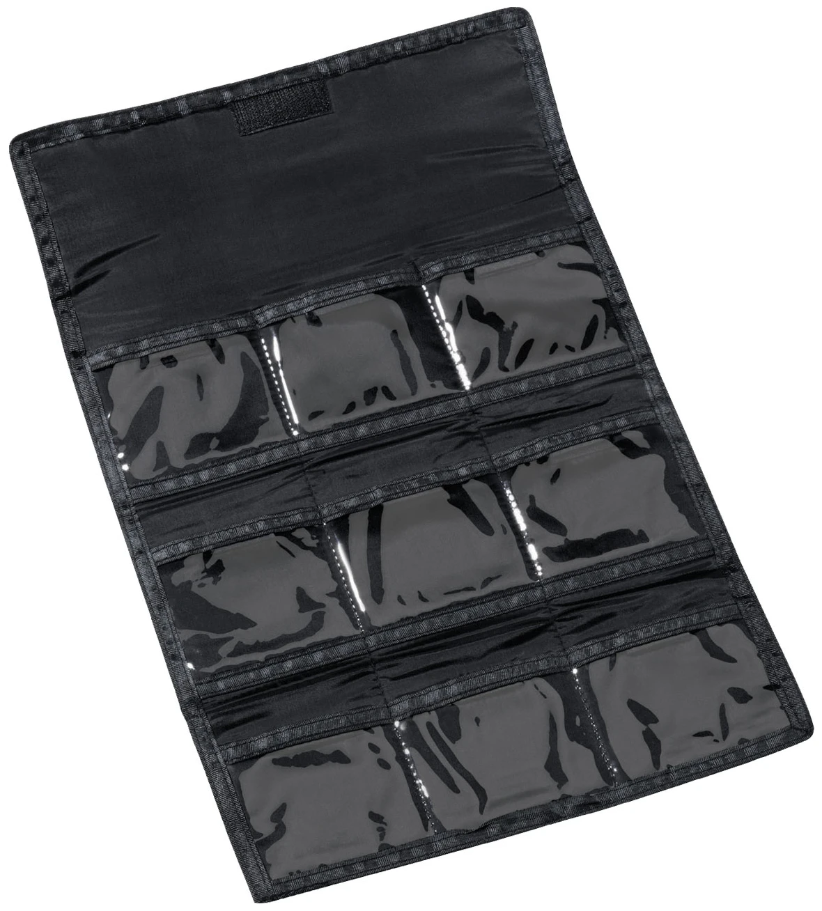Es un bolso plegable porta cuchillas Andis con el cual podrás llevar hasta 9 cuchillas diferentes en sus ranuras bien distribuidas.