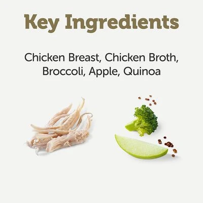 En función de la variedad, se compone de tiernas tiras de carne, pescado o ave. No contiene cereales, pero sí verduras ricas en sustancias vitales que suministran vitaminas, antioxidantes y minerales. Además, contiene abundante caldo, lo cual ayuda a tu perro a ingerir más líquido.