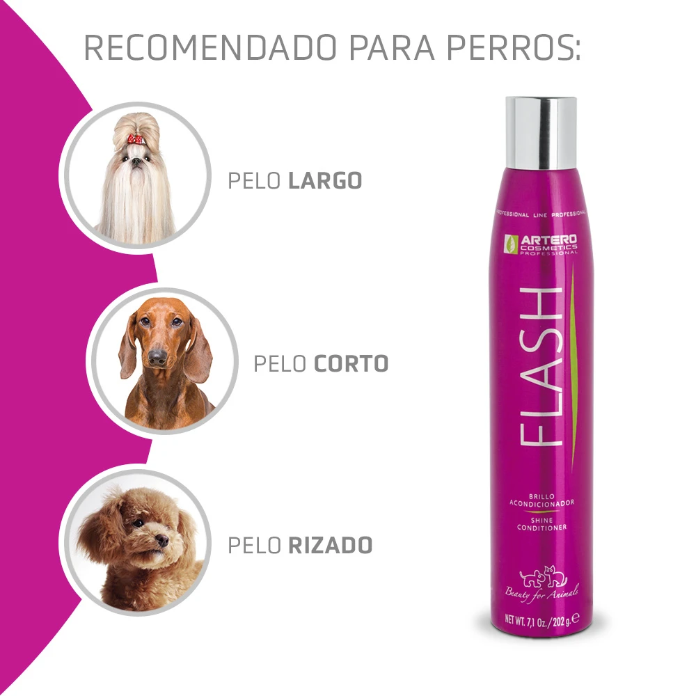 Spray acondicionador no graso que le aporta brillo y suavidad al pelaje de su mascota.