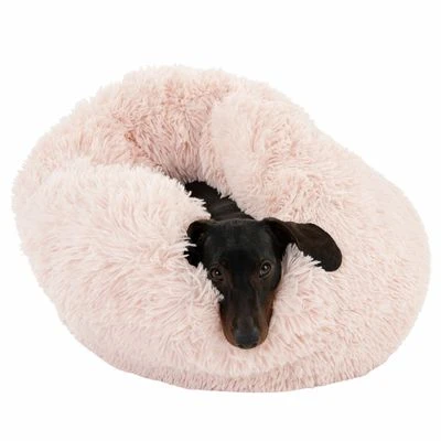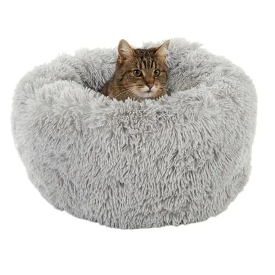 Mullida cama para gatos y perros pequeños, ideal para acurrucarse, antiestrés, redonda, acolchada y con borde muy alto. Hecha de felpa de pelo largo suave, antideslizantes. 55 x 25 cm (Diám x Al)