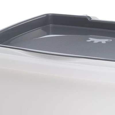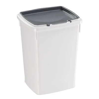 Contenedor para el almacenaje de comida de perros y gatos. Mantiene el pienso fresco y crujiente. Está fabricado con plástico y tiene una tapa y una hendidura para una apertura sencilla.