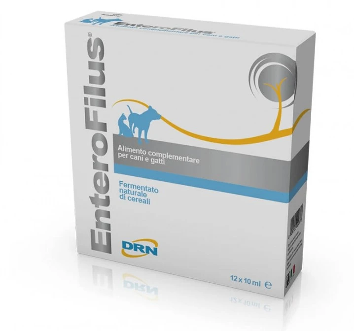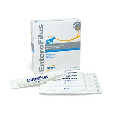 Alimento complementario para el tratamiento de la diarrea en perros y gatos. Fórmula completa con prebióticos y probióticos. Enterofilus mejora la digestión de alimentos y aumenta la calidad de vida de tu mascota, cortando los procesos diarréaicos y restableciendo la flora intestinal. Formato: 12 ampollas x 10 ml.