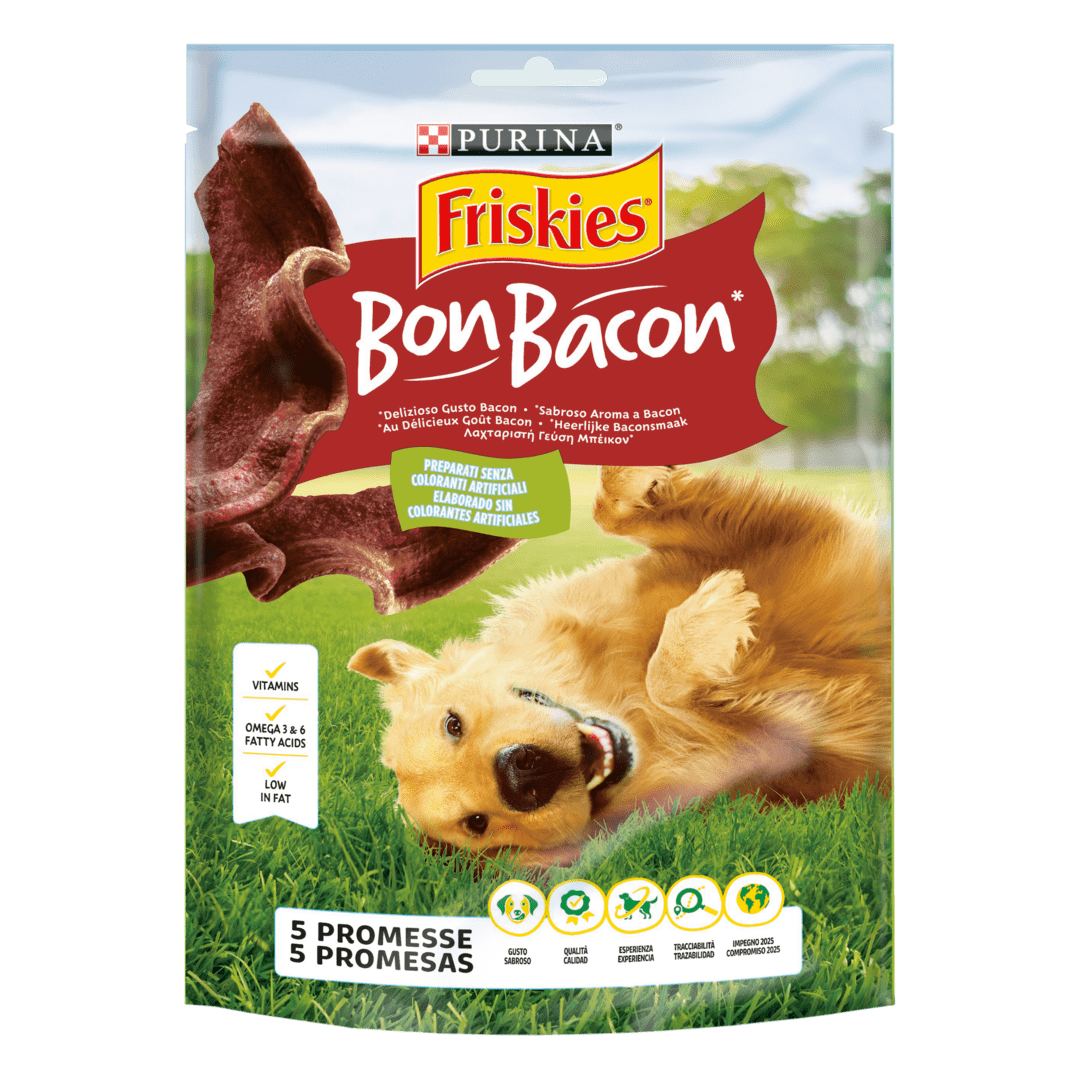 Tiras de sabor a bacon, el premio ideal para recompensar las buenas acciones de su mascota. No podrán resistirse a su delicioso aroma y sabor. Gracias a su cierre hermético se conservan en perfecto estado una vez abierto.