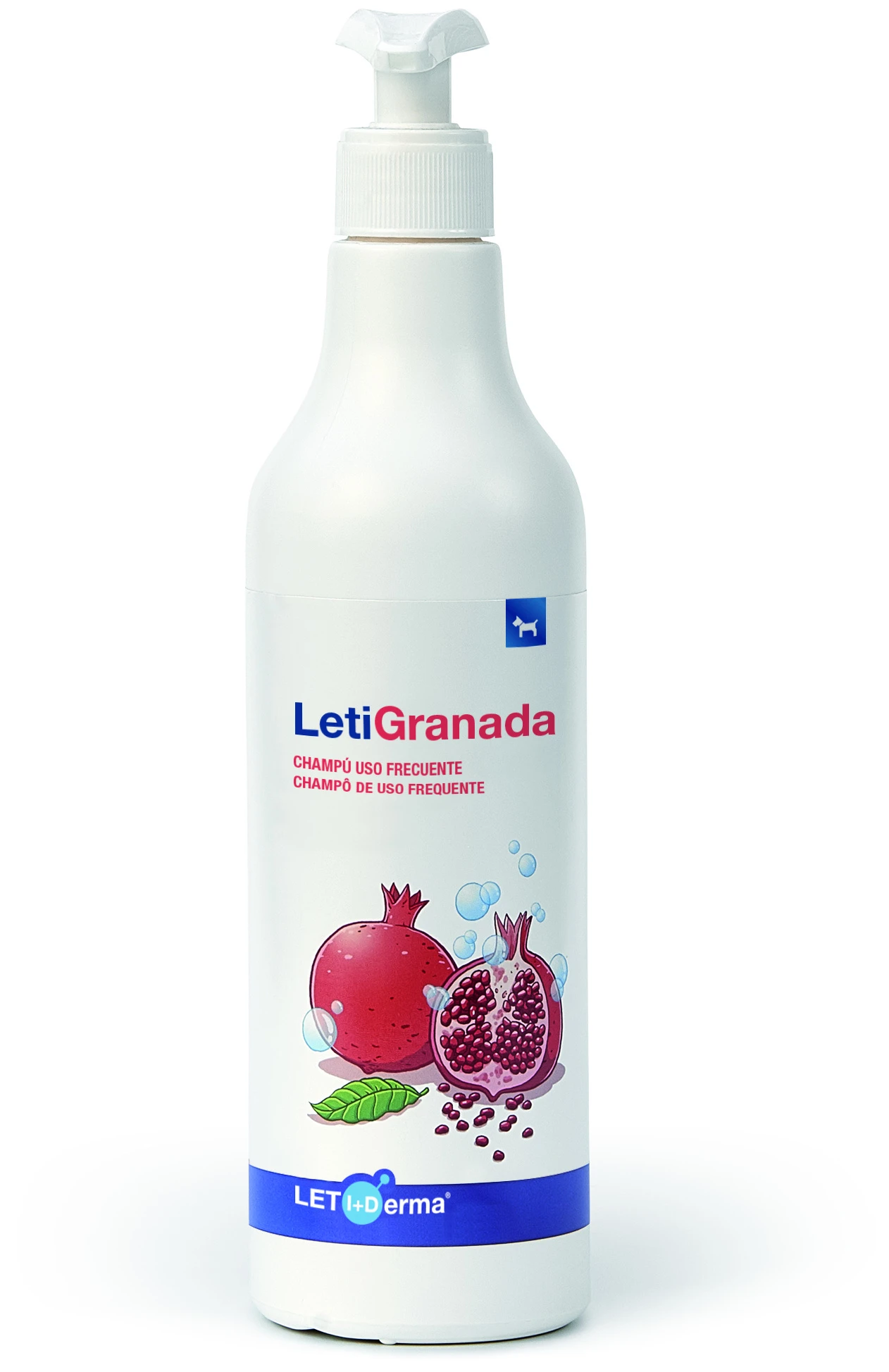Champú dermatológico para todas las edades y razas hidratante y natural para uso frecuente. Su principal componente activo es el extracto purificado de granada formulado con una base rica en vitamina A (retinol), extracto de Aloe vera y otras plantas medicinales que le proporcionan sus características hidratantes, calmantes y cicatrizantes. Se debe destacar el efecto protector de la granada frente a la radiación solar, que permite el brillo y salud del pelo. Sin parabenos