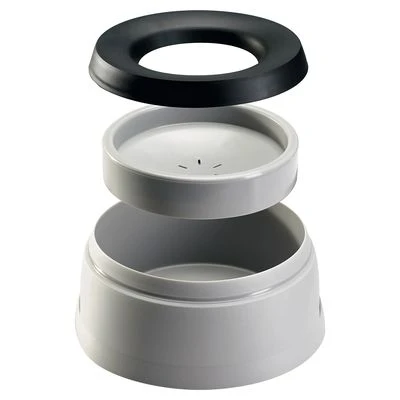 La pieza flotante regula la salida del agua, de esta forma, el perro puede beber cuando quiera, sin que el agua salpique ni se salga formando charcos. El borde superior impide los desbordamientos de agua.