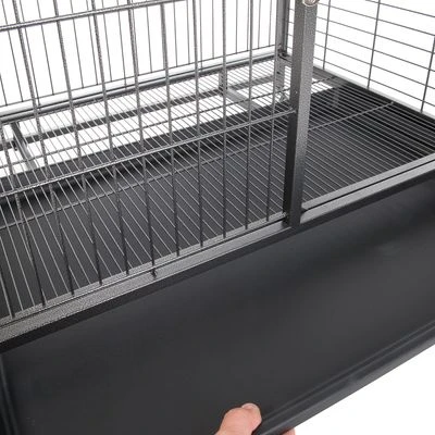 Puedes dejar las puertas de la jaula abiertas para que actúe a modo de guarida o cueva, en lugar de como jaula. En la parte inferior, la jaula cuenta con una bandeja extraíble de plástico que facilita la limpieza. Si quieres que tu perro se sienta más cómodo, sitúa una manta en la base.