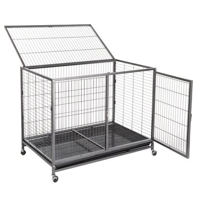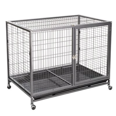 Amplia jaula móvil ideal para cachorros traviesos, o perros en celo o en cuarentena. Ideal también para llevar a tu perro a exposiciones. Las ruedas son desmontables y la bandeja inferior, extraíble.