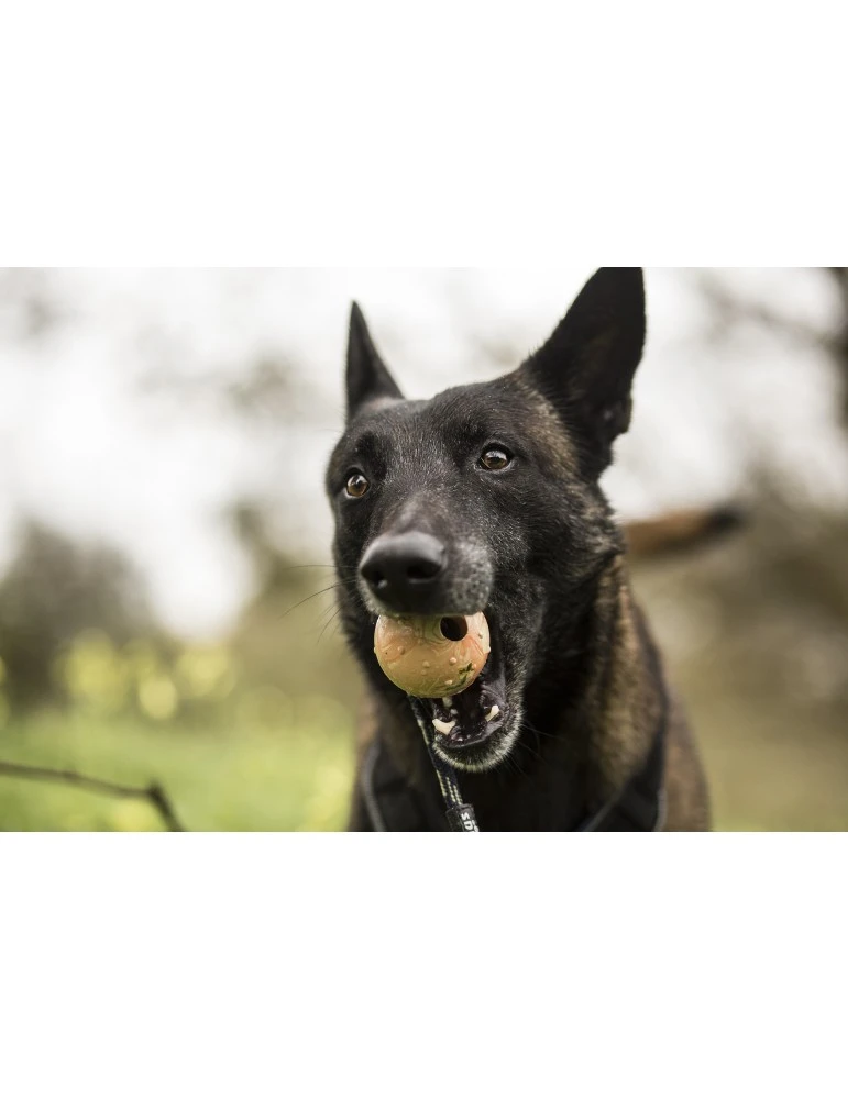 Hemos desarrollado nuestros juguetes y equipo de entrenamiento para las actividades conjuntas del hombre y el perro. La bola elaborada en caucho natural no flota, tiene una cuerda muy resistente y con cierre.