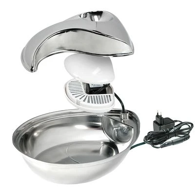 Raindrop de la casa Pioneer Pet es una fuente de agua estadounidense que animará a tu mascota a beber más a menudo gracias al goteo continuo realmente atrayente. Esta fuente de agua ofrece diseño y calidad, un accesorio moderno en acero inoxidable muy útil para tu mascota.
