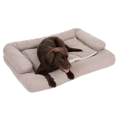 Sofá para perros, con borde alto para apoyarse, entrada rebajada, cojín reversible, protege del frío del suelo, fácil de limpiar, color visón