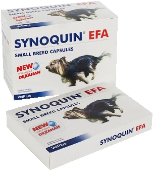 Synoquin EFA es nuestro suplemento líder para el cuidado de las articulaciones. Contiene Dexahan, una fuente única de ácidos grasos esenciales Omega 3 (EFAs). Los EFAs Omega 3 son un suplemento excelente para añadir a la dieta de tu mascota, puesto que tienen muchos beneficios para la salud y son frecuentemente usados para el manejo de las articulaciones. Dexahan es una fuente concentrada de Krill, se trata de un crustáceo diminuto con grandes beneficios nutricionales. Los EFAs presentes en el aceite de Krill son más fáciles de digerir y de aprovechar por el cuerpo que aquellos que provienen de otras fuentes.