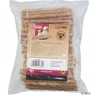 Snacks de piel de vacuno desecada para perros; preparados a partir de una sola pieza de carne enrollada. Favorecen la higiene dental y la salud de las encías. Rollitos de 12,5 cm de longitud.