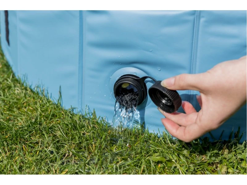 Características de la piscina azul para perrosLa piscina no requiere bomba de aireMontaje simple y sencillo para que esté lista en poco tiempo. Desmontada ocupa muy poco espacioVaciado a través de válvula de drenajeCon suelo antideslizante para que tu perro pueda disfrutar de ella sin peligro de resbalarse Otras características.Fabricada en plástico muy resistente a mordidas y posibles arañazos del perro.Piscina muy resistente perfecta para que tu perro se refresque. Medidas: S: 80×20 cmM: 120×30 cmL: 160×30 cm