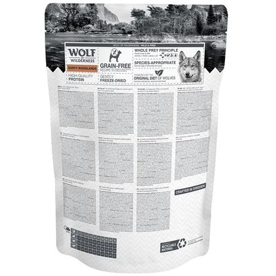 Alimento crudo liofilizado para perros. Añade con cada bocado de Wolf of Wilderness RAW FOOD también un sabor crudo y genuino al pienso o comida húmeda de tu perro. También se puede ofrecer de vez en cuando como snack.